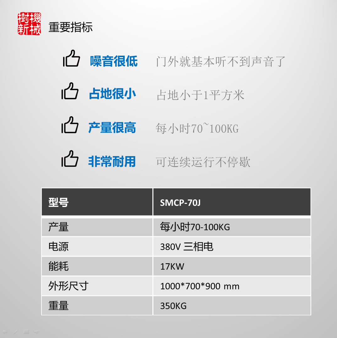 • SMCP-70J 挤出膨化机(米花机),可膨化大米、玉米、高粱、绿豆、黄豆等物料,现升级为全不锈钢外壳! SMCP-50Q 气流膨化机(米通机) 可膨化大米、小米、小麦、青稞、苦荞、玉米、高粱、薏仁、荞麦、豆类等含淀粉的物料.