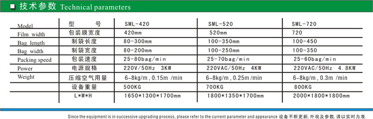 SML-420/520/720 立式包装机(翻领提结构适合大重量大尺寸的粉末,颗粒的包装)